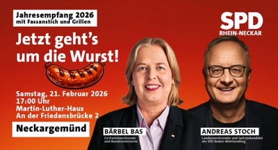 Weil es um die Wurst geht!“ – Jahresemfpang mit Bärbel Bas, Andreas Stoch und unseren Kandidierenden!