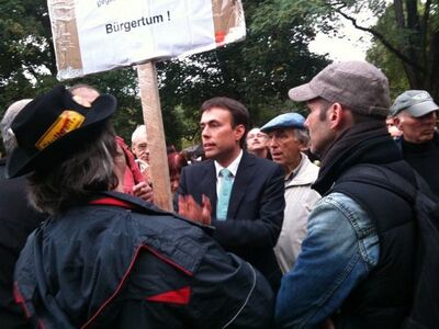 Während die Landesregierung am Tag der Eskalation abtaucht, begibt sich der SPD-Spitzenkandidat Nils Schmid an den Ort des Geschehens. Er wirbt für die Idee einer Volksabstimmung zu S21 (www.warumspd21.de/s21) und diskutiert mit den Menschen im Stuttgarter Schlosspark. Wenige Stunden zuvor war dort eine Schülerdemonstration niedergeknüppelt worden. Später musste das Innenministerium die Aussage dementieren, dass die Provokation von „Steine werfenden Jugendlichen“ ausgegangen sei.