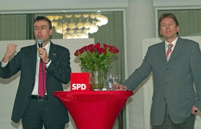 Ein volles Atrium im Leimener Kurpfalz-Centrum erwartete gestern den Spitzenkandidaten der SPD Baden-Württemberg Nils Schmid und den Landtagskandidaten im Wahlkreis Wiesloch Hansjörg Jäckel. Die Erwartungen des Publikums wurden nicht enttäuscht. Der Fraktionssprecher der SPD Leimen, Peter Sandner, schickte einen kämpferischen Hansjörg Jäckel auf die Bühne, der nicht nur Valentinsrosen für alle versprach (die es am Ende der Veranstaltung auch wirklich gab), sondern auch die Grundzüge und Leitmotive seiner Politik deutlich machte: „Ich stehe für eine Politik, die uns Menschen im Blick hat, für eine Politik, die uns soziale Sicherheit gibt und für eine Politik, die unseren Kindern eine chancenreiche Zukunft schafft.“